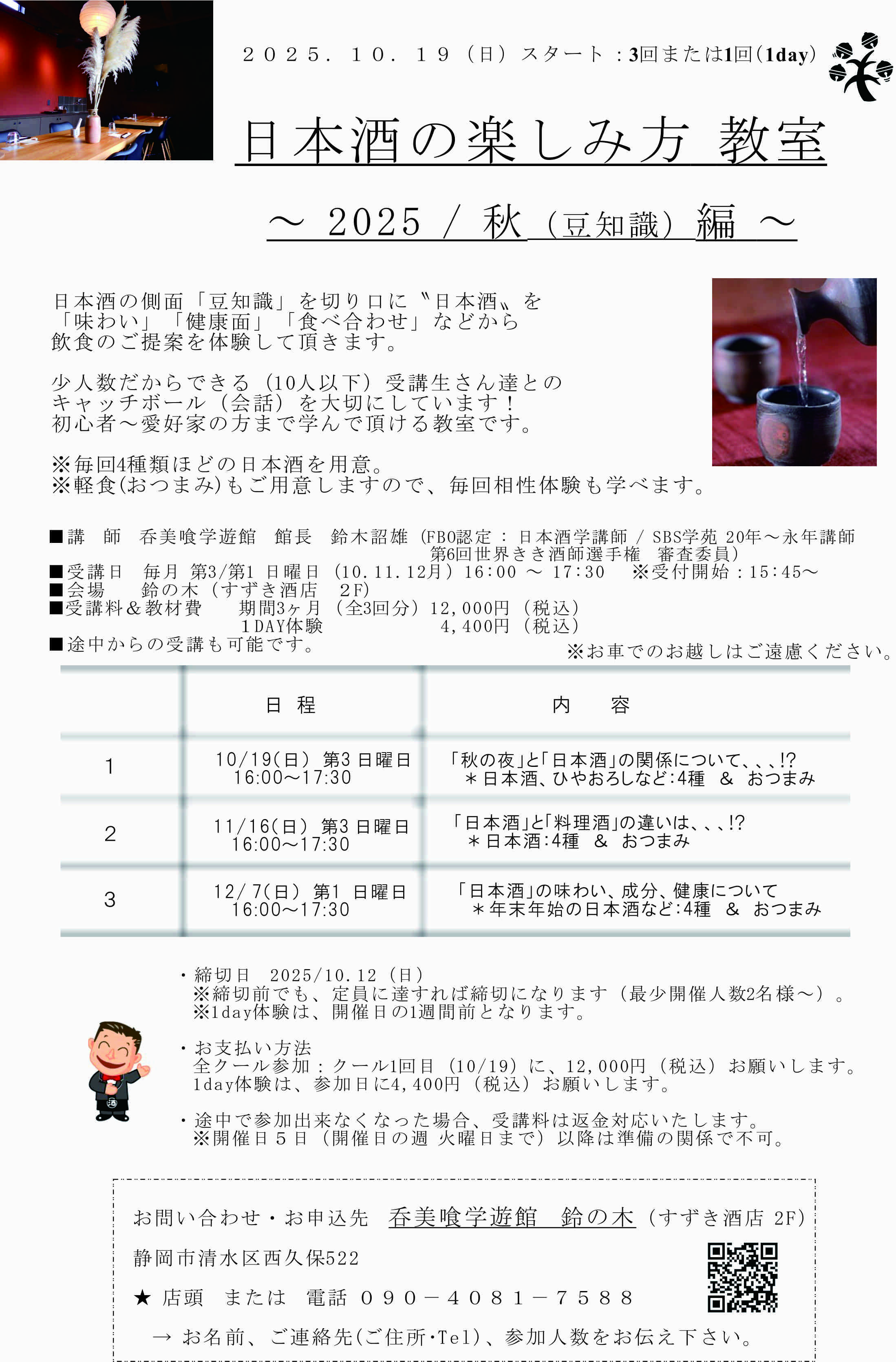 日本酒の楽しみ方 教室 ~2026:新春 編~ 1/18(日)スタート