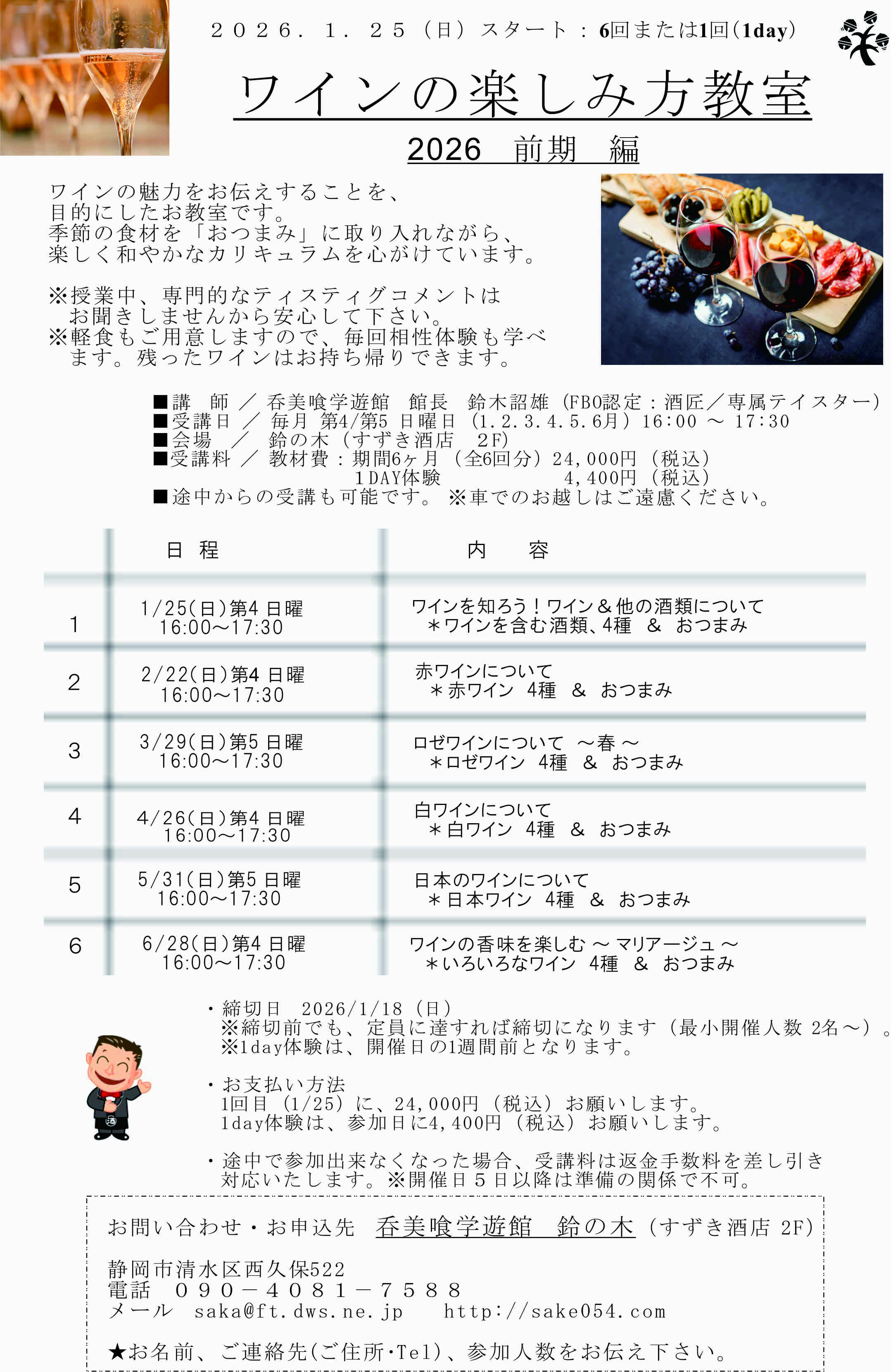 ワインの酒楽しみ方教室 2026前期・1/25(日)スタート ~